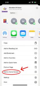 2. Tap “Add to Home Screen”